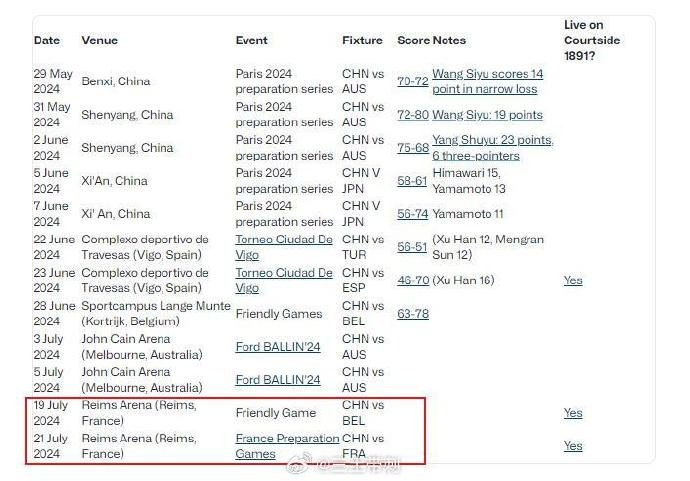 法国篮协官方发布的信息,奥运前的这次热身,日本也同样和比利时、法国交手,这应该是四队在奥运前最后的热身安排了。