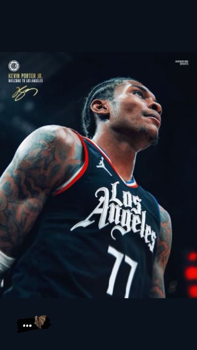 直播吧07月14日讯 快船新援小凯文-波特在社媒晒出自己身着快船球衣的P图,号码是77。