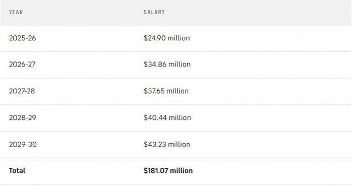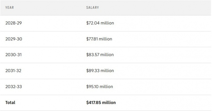 布伦森还有其他的选择,这可能会对这些金额数字有些许影响;他可能会再次提前续约,或者在2028-29赛季执行球员选项,再来赌一次联盟有10%的工资帽涨幅,以得到一份更大的合同。这里存在着不确定性。