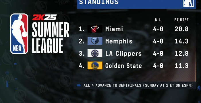 4不败之身!夏联半决赛四队出炉:热火、灰熊、快船、勇士
