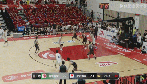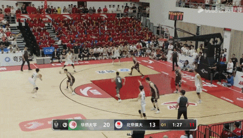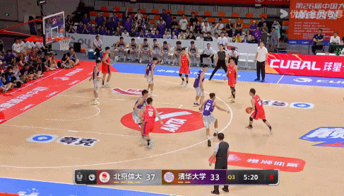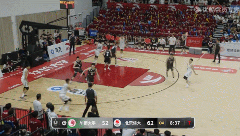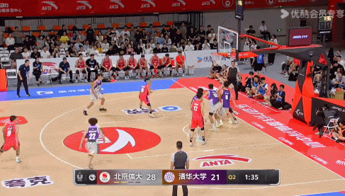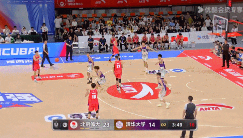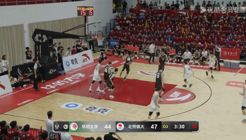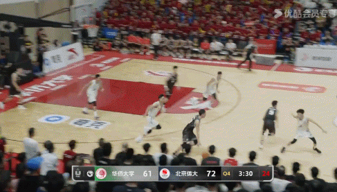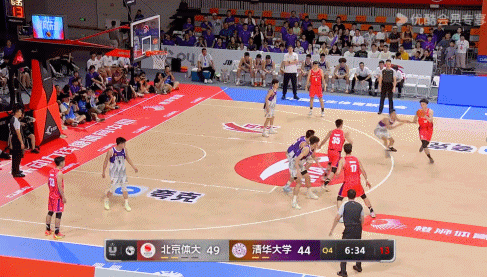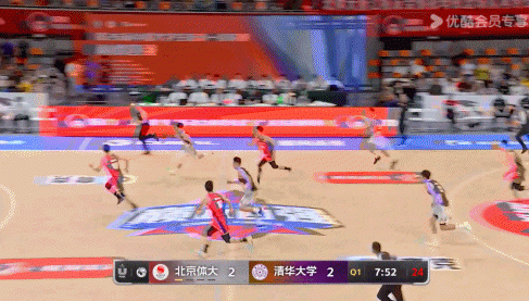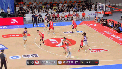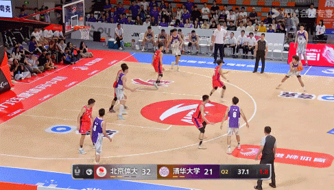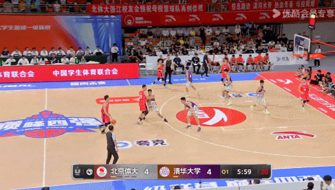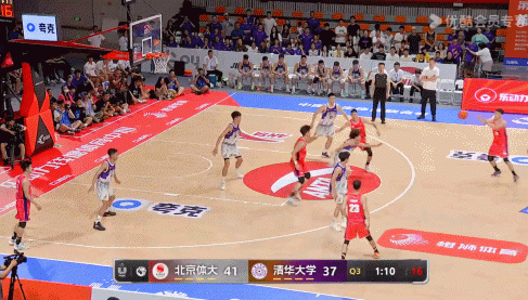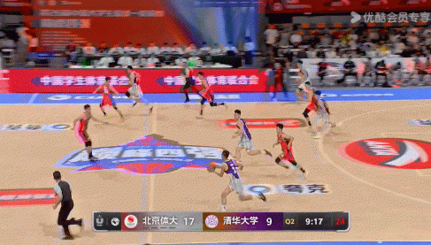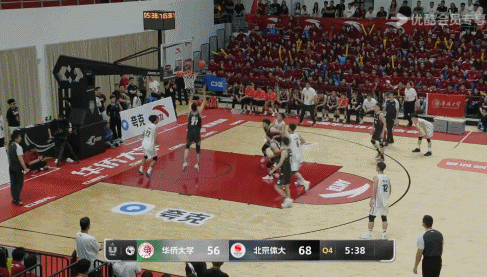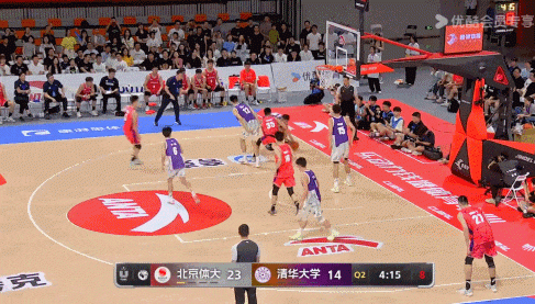 清华中锋杨曦皓,低位背打,被谢智杰顶到罚球弧铁血中投