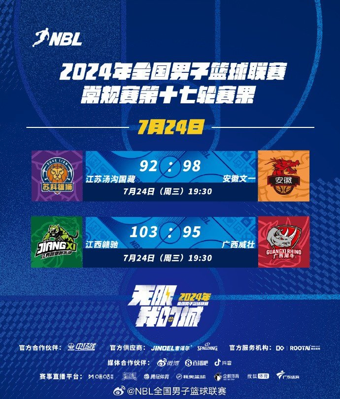 NBL今日赛果:江苏汤沟国藏不敌安徽文一 江西赣驰击败广西威壮
