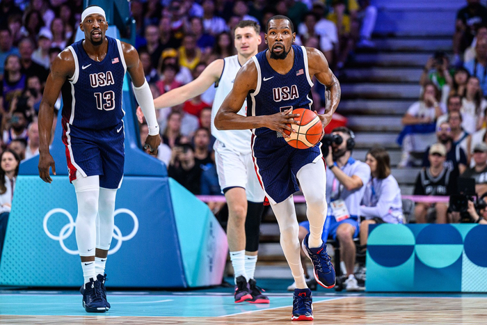 美国队的人员构成类型也十分均衡,霍勒迪、怀特、浓眉、阿德巴约负责干脏活累活,内线和后场防守都有最顶级的资源配置,射手位上有库里、杜兰特、布克、华子,球星云集,主控手老詹之外有多个点都能担任持球副攻,美国队此役打出了精彩的强侧挡拆接转移球弱侧再突投启动,10人大轮换彰显了绝对阵容深度和天赋,毫无疑问是本届奥运会独一档的存在。