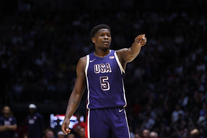 明星得分后卫爱德华兹在美国队奥运表演赛开始前宣布,他将是球队今年夏天的头号选择,即使他身边的队友是多位未来的名人堂成员,这番话引起了不小的轰动。美国队的表演赛期间,詹姆斯在比赛后期看起来更像是球队的头号选择。但即便如此,爱德华兹的这番话可能还是有点自我调侃的意味。无论如何,今年夏天人们对爱德华兹的期望很高,因为到目前为止,他一直是布克身后的替补球员。毫无疑问,爱德华兹在带领森林狼打进西部决赛并入选最佳阵容二阵之后,在奥运会上将会有很多人关注他。爱德华兹在去年夏天的世界杯上获得了一些不错的FIBA比赛经验,尽管美国队最终只获得了第四名,但爱德华兹以场均18.9分的得分领跑全队,这应该会帮助他在即将到来的巴黎奥运会上再创辉煌。