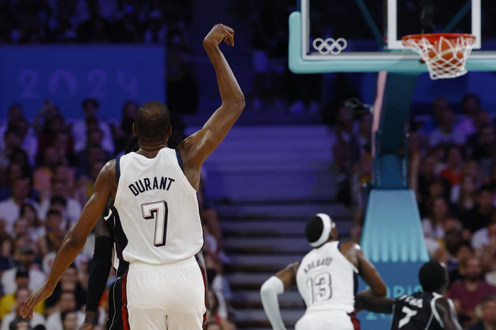 这家给他准的🎯杜兰特奥运会投进81记三分历史第三 命中率52.3%