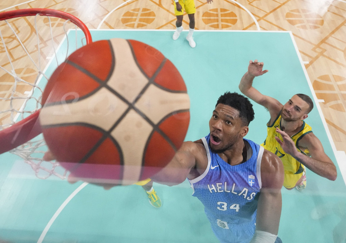 字母哥不负众望率先带起节奏,单刀反击提速一打三,化身冲阵急先锋,不等澳大利亚落位布阵,这也是字母哥最舒服、高效的得分方式;一旦落入阵地战,希腊打得很有耐心,字母哥连续给持球的卡拉西斯或沃卡普设立无球掩护,伺机顺下内切,吸引包夹就出球相信空位队友——希腊利用字母哥的牵制力,轻松展开局部4打3,卡拉西斯、米托格卢、沃卡普、托利奥普洛斯多点开花。