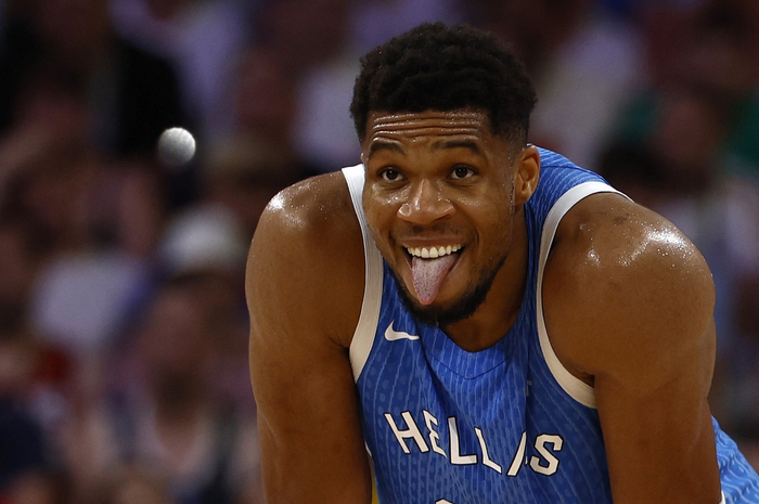 希腊队对字母哥的用法和雄鹿队的思路不谋而合:四射手拱卫字母哥,卡拉西斯、米托格卢、帕帕尼古拉乌、沃卡普都有三分射程,空间阵容尽可能创造出让字母哥打得舒服的进攻空间。