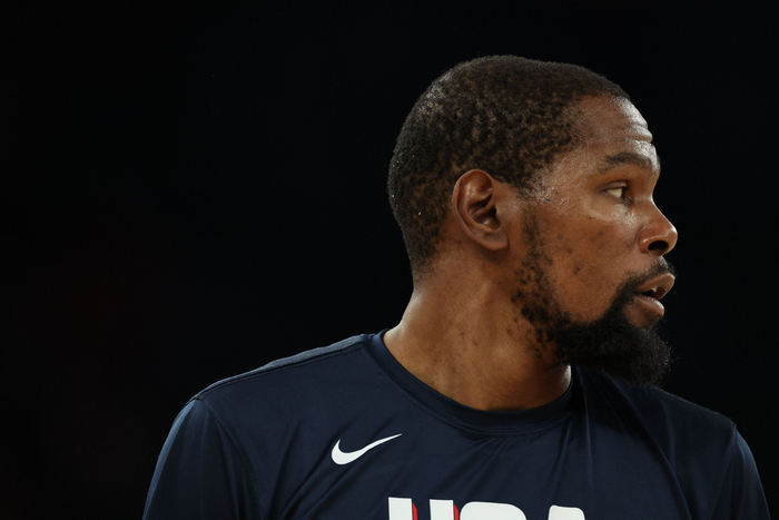 末节焦灼时刻,美国男篮在仅有2分领先的情况下,杜兰特无视防守命中大号中投帮助球队将优势扩大到4分。