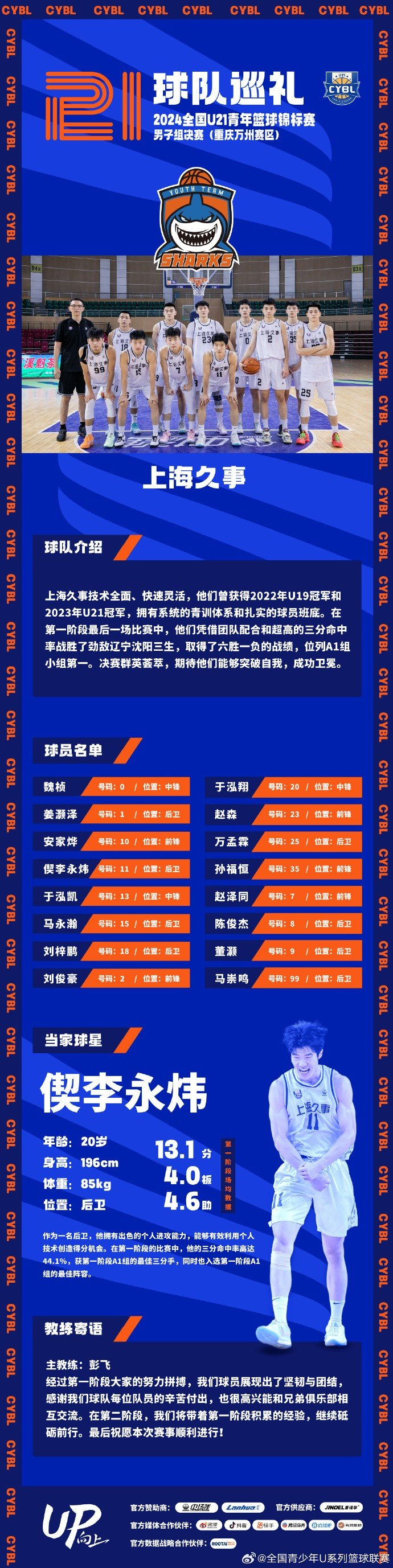 【🌟巡礼】 U21男子组决赛A组队伍——上海久事&浙江广厦&龙狮青年&天津荣钢。