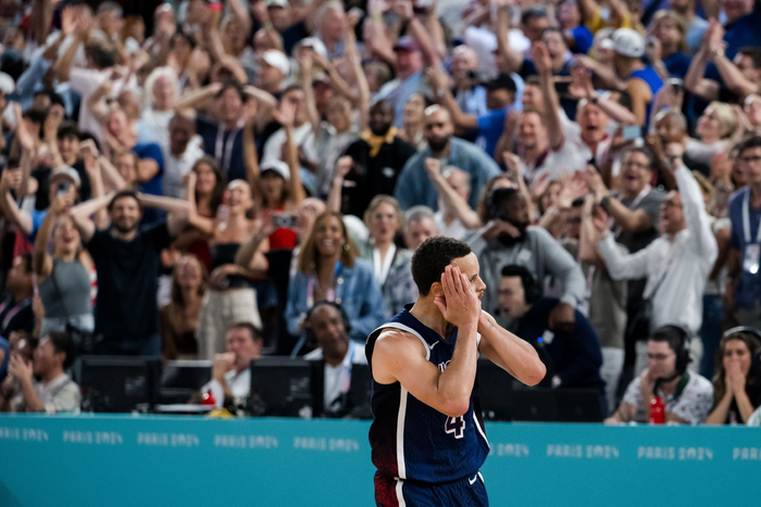 本场比赛最后时刻成为库里的个人表演时间,最后法国一度迫近到3分分差,库里连进4个三分,杀死比赛悬念,送全场晚安!全场比赛库里出战29分钟,三分12中8,轰24分1板5助1断,正负值+20!