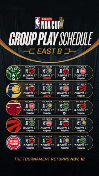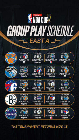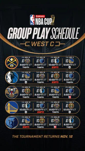 新赛季NBA杯赛程公布:11月13日揭幕 太阳湖人同组