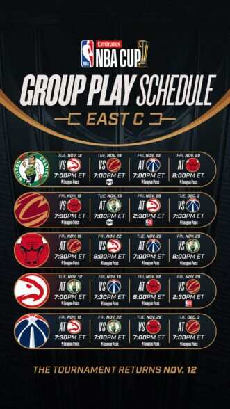 北京时间8月14日,NBA官方公布了新赛季NBA杯的赛程,本次赛事将依然分为小组赛和淘汰赛两个阶段,小组赛将于北京时间11月13日正式开战,半决赛和冠军赛将在拉斯维加斯的T-Mobile Arena举行。