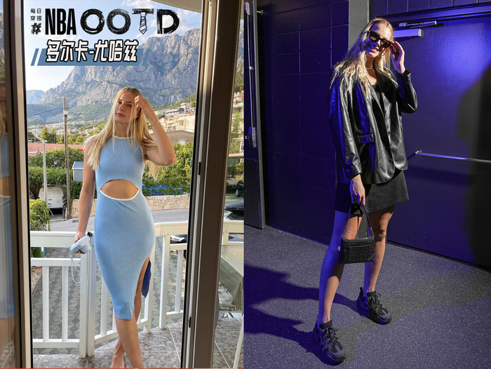 尤哈兹也常在通道穿搭中展现自己活泼的一面,将休闲风连衣裙与皮质西装外套完美组合能够一扫纯黑色的单调,在WNBA掀起一股青春风暴。