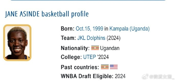 珍-阿辛德,乌干达籍,司职前锋,上赛季效力于NCAA的一级联盟的德克萨斯大学埃尔帕索分校,场均可以得到9分6.7个篮板,有不错的防守能力。
