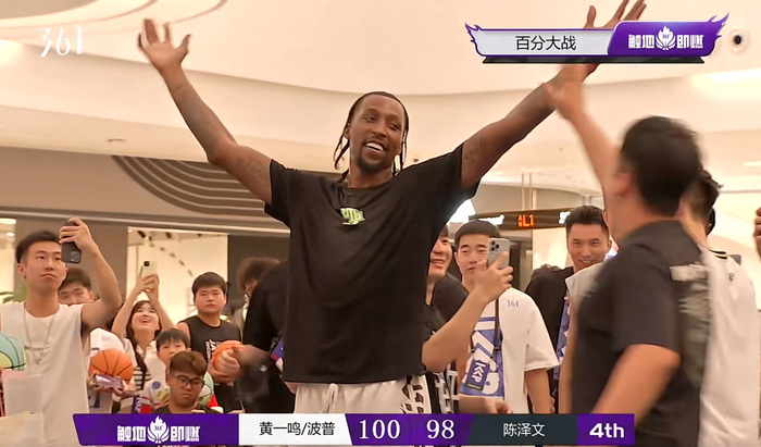 直播吧8月22日讯 361度篮球代言人、魔术球员波普中国行,在百分大战中三分绝杀陈泽文。