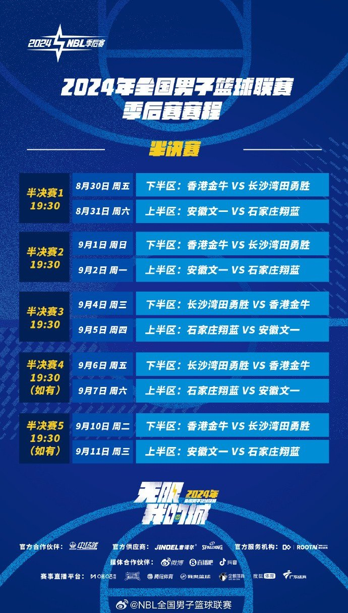 直播吧8月27日讯 2024年NBL联赛半决赛首轮比赛于8月30日、31日进行。