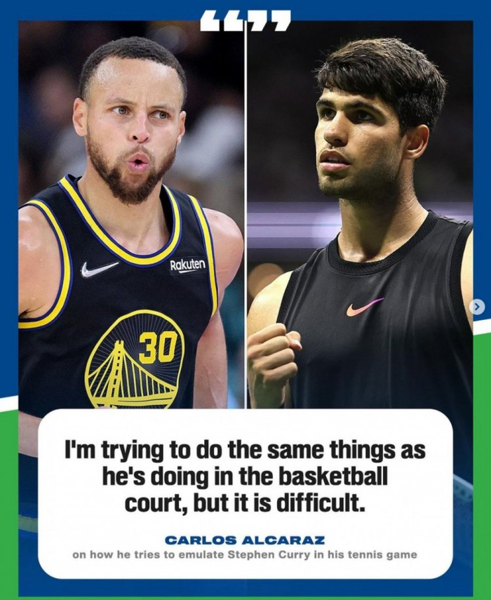 谈到库里,阿尔卡拉斯说道:“我在现场看过斯蒂芬-库里的比赛。我试着做和他在篮球场上做的一样的事情,但这很难。可能是同样的比赛,同样的感觉,我们试图在比赛中添加乐趣。”