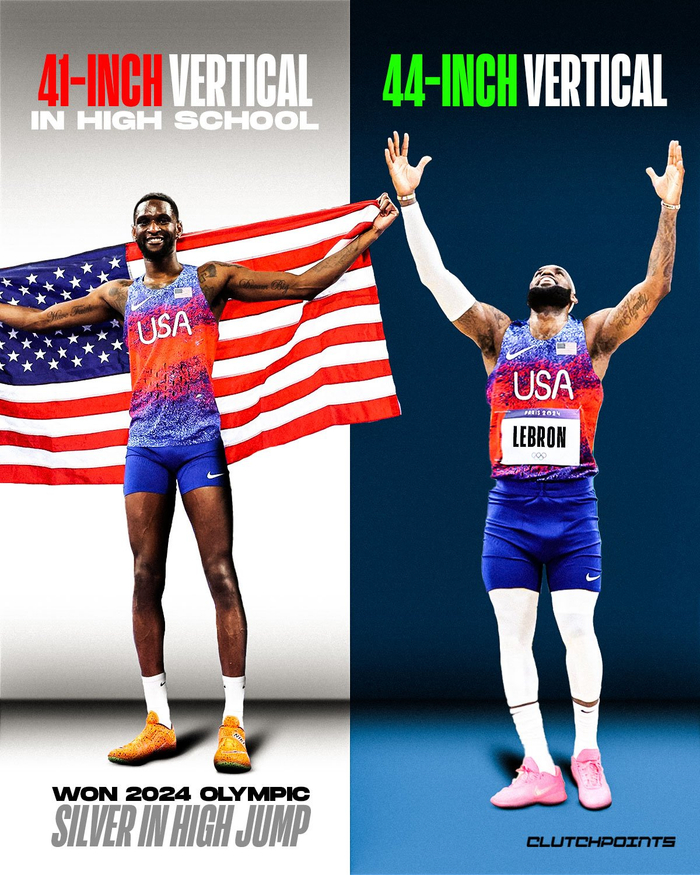 能参加跳高?奥运银牌得主高中垂直弹跳41英寸 詹姆斯巅峰44英寸