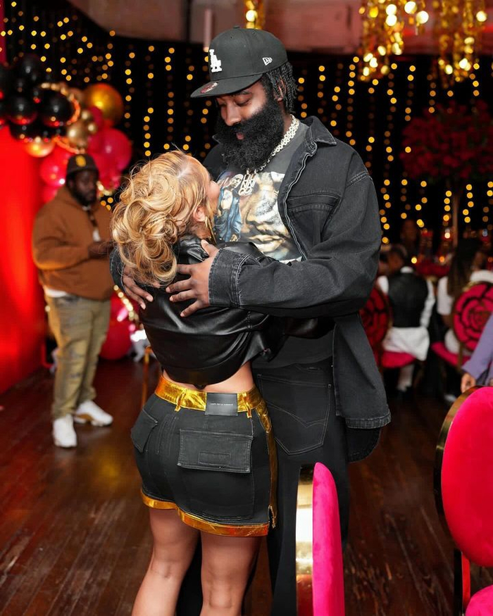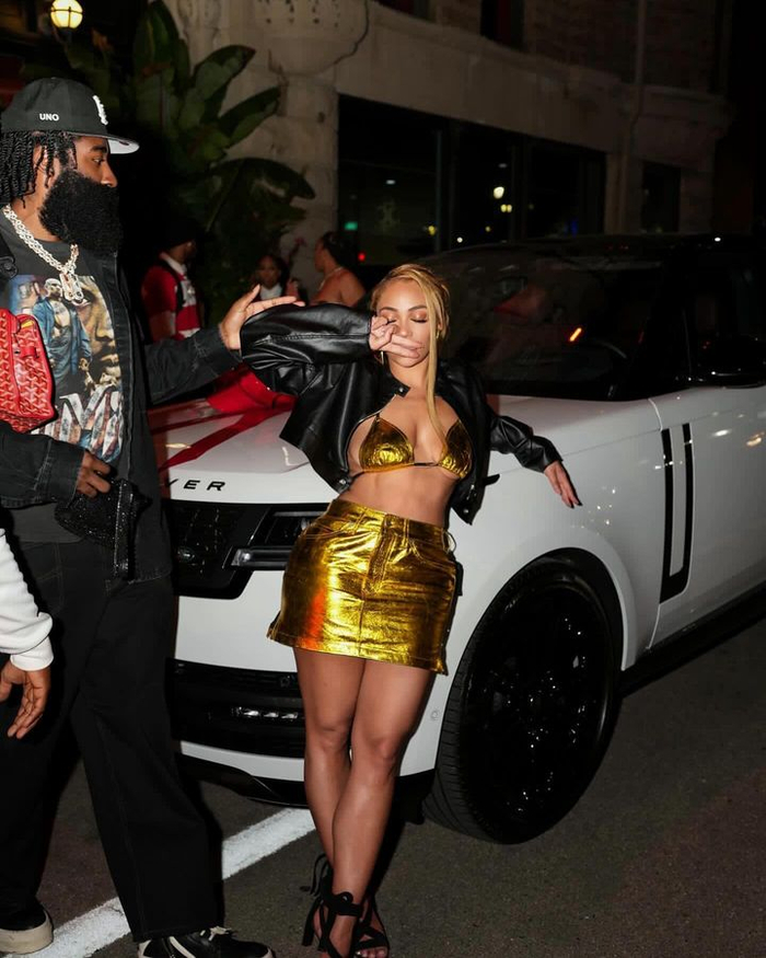 哈登向其赠送了一辆路虎揽胜,并在趴体上与其恩爱拥抱。