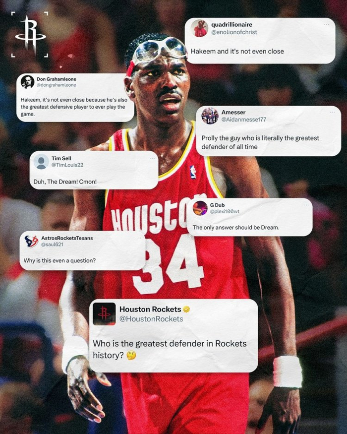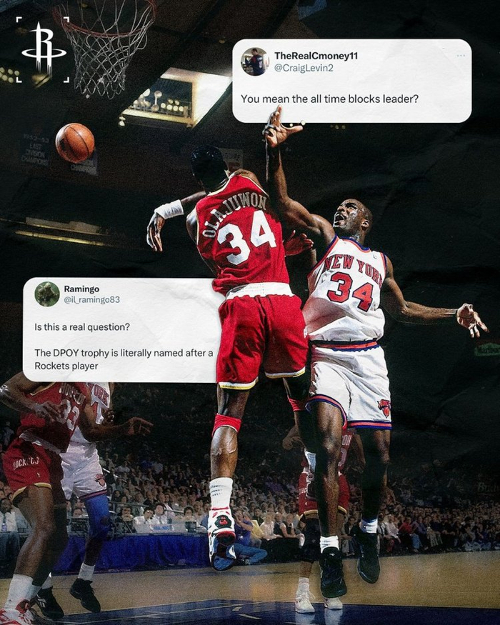 火箭官方晒队史最佳防守球员答案:唯一答案就是奥拉朱旺🐐