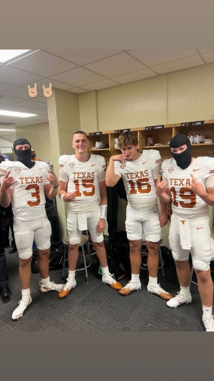 杜兰特晒出一张得克萨斯大学橄榄球队球员的照片,配上2个“🤘”表情。