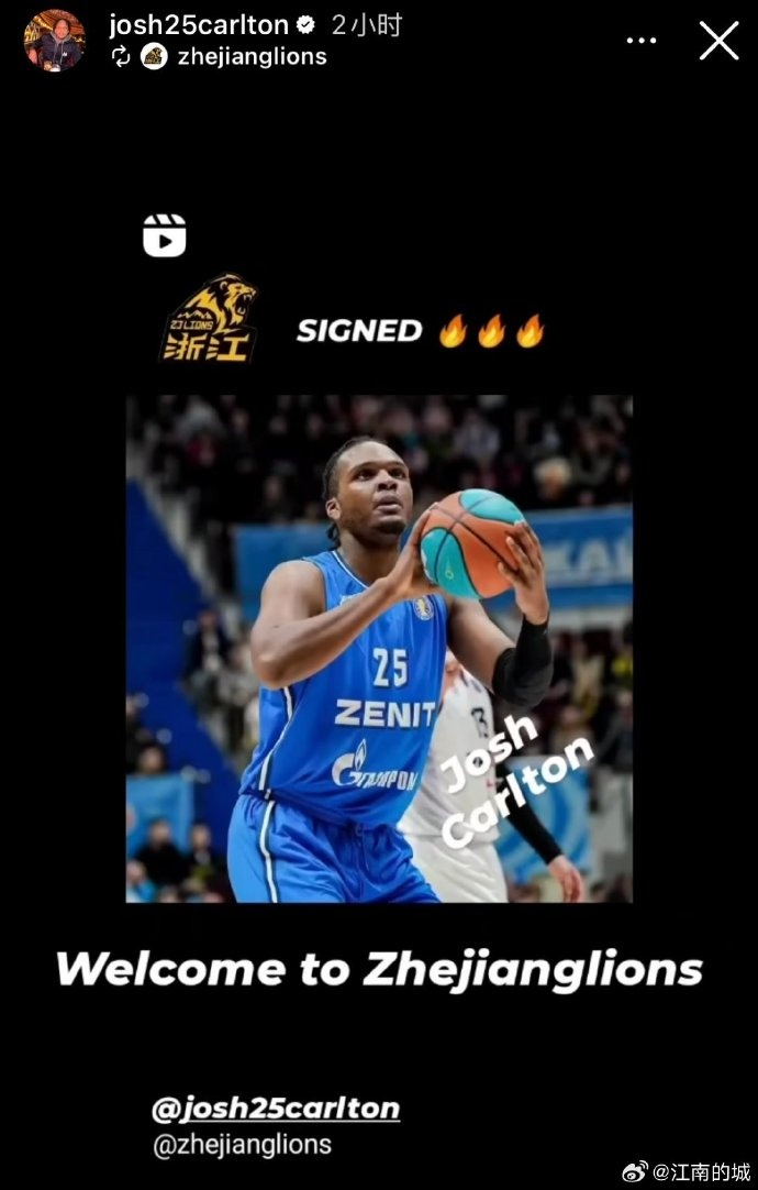 尘埃落定!香港金牛外援约书亚-卡尔顿社媒自宣将加盟广厦