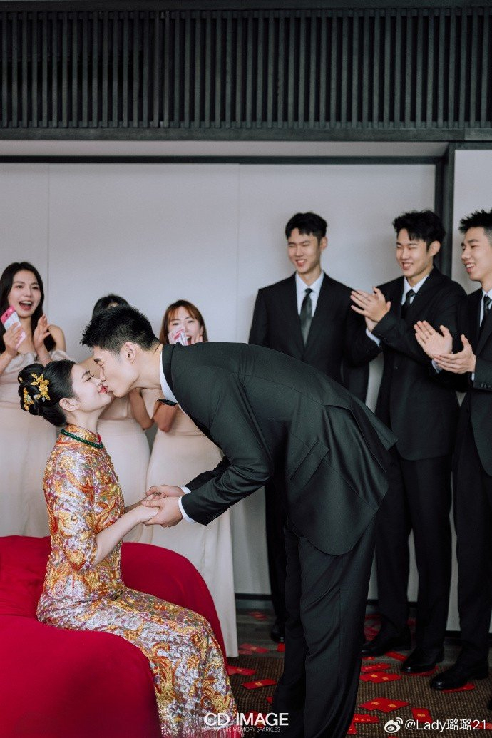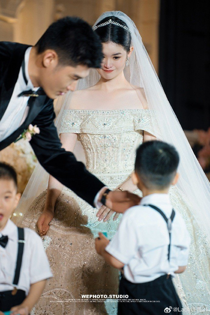 胡金秋的妻子王璐更新社媒,晒出一组现场照并写道:“何其有幸遇见你,让我能够骄傲地嫁给爱情。”