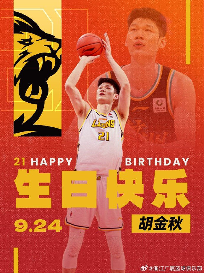 广厦队官博写道:“祝队长胡金秋生日快乐,新的一岁身体健康,我们一起携手共进。”