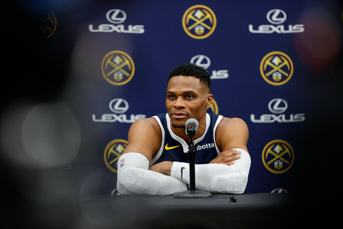 直播吧9月29日讯 今日掘金球星威少在球队训练结束后接受了媒体采访。