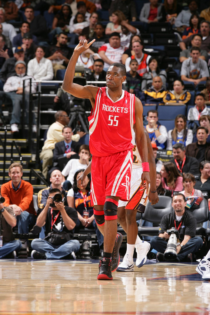 2004年,38岁的穆托姆博被交易到了火箭,担任姚明的替补,焕发第二春。