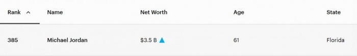迈克尔-乔丹最新身价35亿美元 排在全球富豪榜第385位