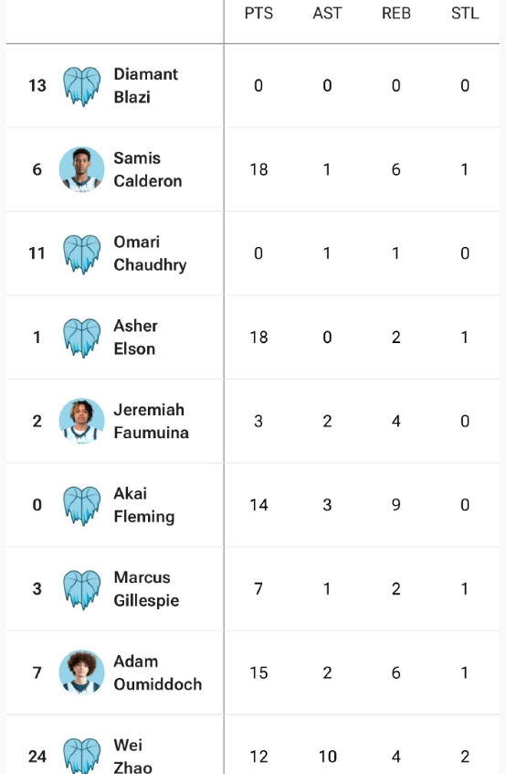 全场,他出战30.2分钟,11投4中,其中三分球10中4,得到12分4篮板10助攻2抢断1失误的数据。他所在的Cold Hearts以87-93不敌Dynamic Prep。
