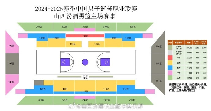 可以看到,山西男篮新赛季主场套票最低为2482元,最高为23069元。