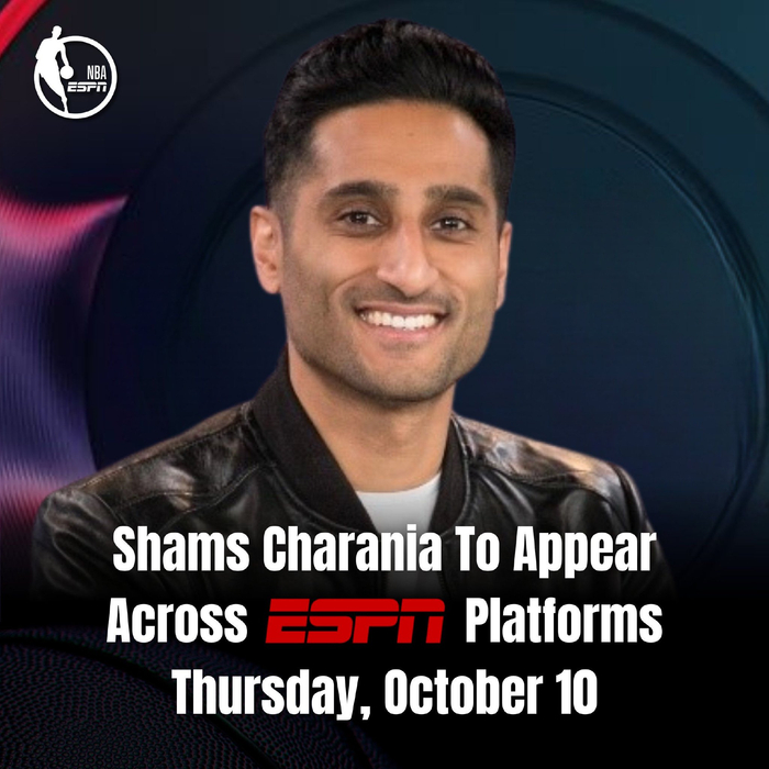 Shams将于10月11日(周五)在首次ESPN平台上亮相,他也将在Get Up、First Take、The Pat McAfee Show、SportsCenter以及NBA Today等节目中亮相。
