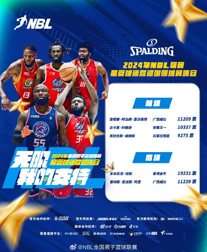 无限我的支持|2024年NBL最受球迷欢迎阵容票选活动最终结果出炉!快来看看你喜爱的球员有没有上榜!