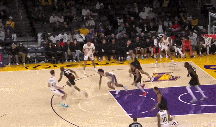 他成功抢断湖人的17号秀胡德-席菲诺,用自己标志性的双手扣篮拿到了职业生涯首分。