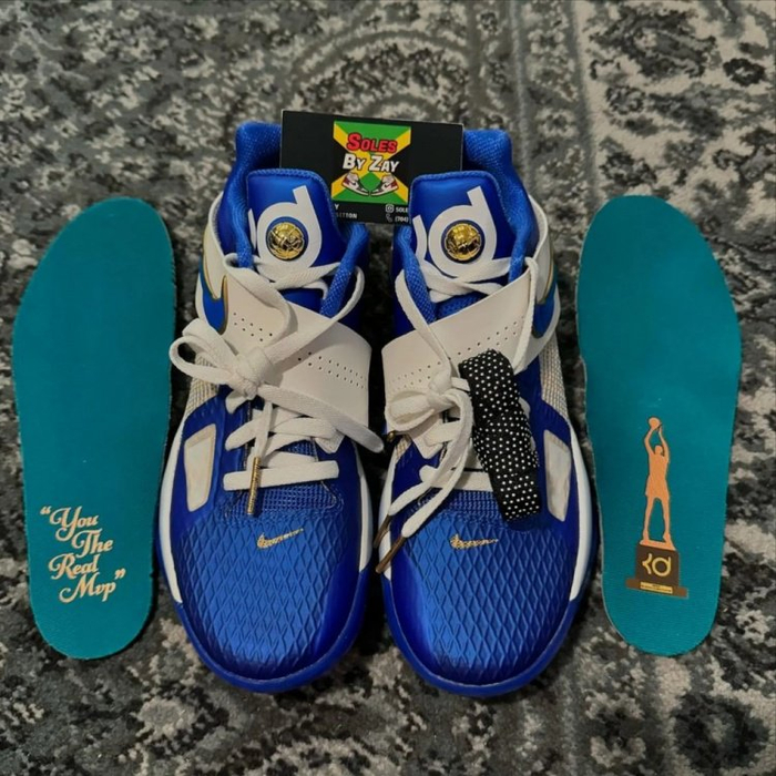 鞋垫则直观体现配色主题,一边是杜兰特造型的MVP奖杯,一边便是那句真情流露的“妈妈你才是真的MVP”。