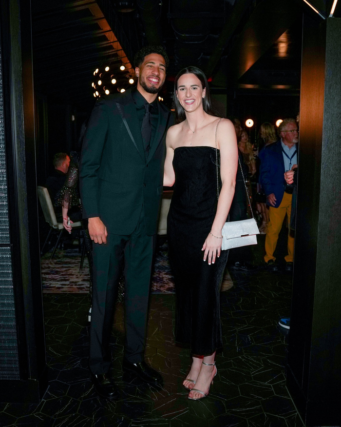 直播吧10月22日讯 本赛季WNBA最佳新秀凯特琳-克拉克上周末参加了为步行者基金会举行的筹款活动Golden Gala,活动上她与同城控卫哈利伯顿合影。