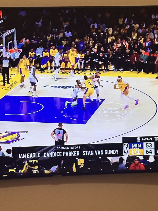 闹乌龙😅湖人VS森林狼比赛中 字幕将WNBA名宿帕克的名字打错