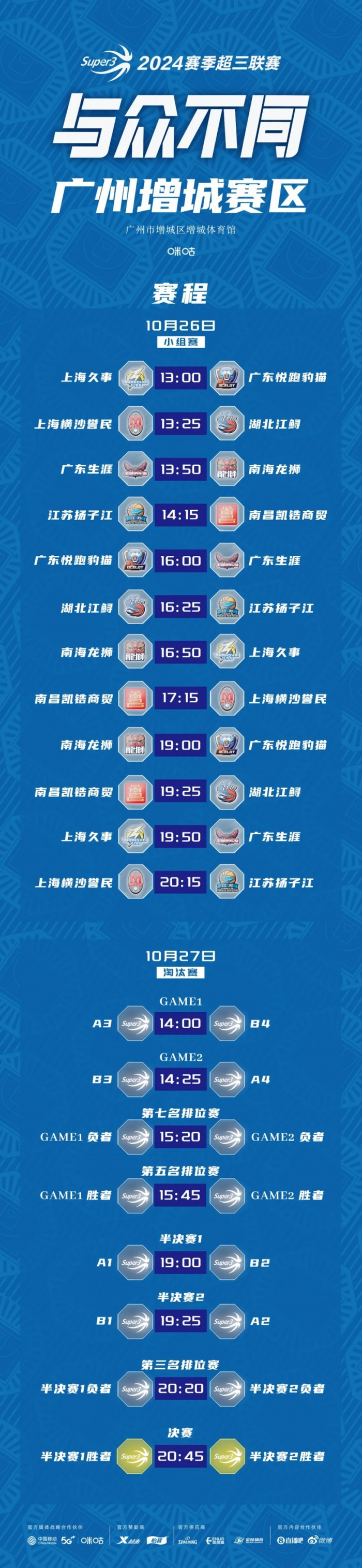 10月26日-10月27日,本赛季常规赛收官站即将打响!“冠军收割机”上海横沙誉民和传统强队上海久事将再度向冠军发起冲击。排名接近的南昌凯锆商贸和江苏扬子江也将为了争夺季后赛名额而全力以赴。坐镇主场的广东悦跑豹猫能否延续上周的精彩表现,再创佳绩?