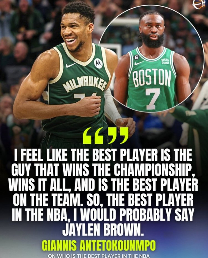字母哥说道:“我觉得最好的球员是赢得总冠军、赢得一切、并且是球队最佳球员的那个人。所以,现在NBA最好的球员,我可能会说是杰伦-布朗。”