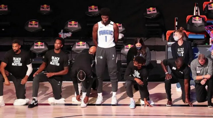 不过凡事都有例外,魔术球员乔纳森-艾萨克旗帜鲜明地支持特朗普,当年NBA球员为了黑人兄弟单膝下跪时,只有他站得笔直,场外也拒穿Black Lives Matter的T恤,他认为做这些表面功夫并不能拯救黑人群体的命运。今年2月,艾萨克发了一条推特:“可能穿上特朗普的那双鞋,就是为了看你们发疯。”到了4月,他继续为特朗普站台:“基于双方的政策和意识形态,作为一个基督徒和美国人,很难给卡马拉投票。”