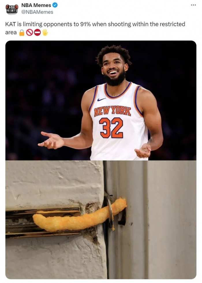 自媒体揶揄:唐斯可以将禁区内对手的命中率“限制”到91%