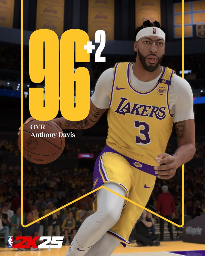 其中,湖人球星安东尼-戴维斯的能力值+2从94升至96,成为湖人队内的最高值(詹姆斯95)。