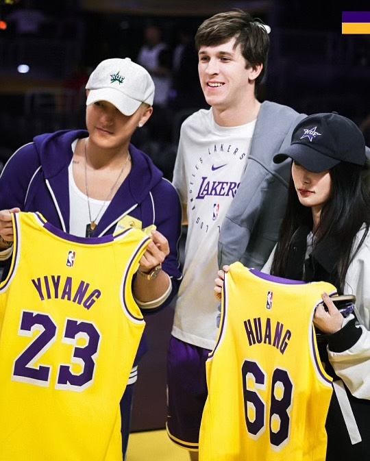 黄子韬和徐艺洋一同到场观看湖熊大战!湖人官方赠予球衣😘
