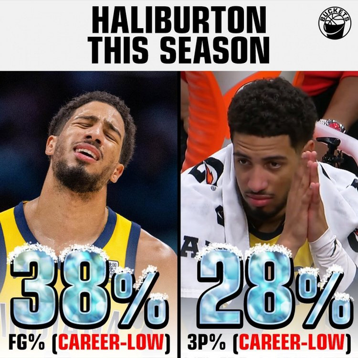 🤨哈利伯顿本季投篮命中率37.5% 三分命中率28.4%均为生涯新低 NBA综合 2024.11.2207:13 关注 哈利伯顿本赛季场均15.3分3.5篮板8.5助攻,投篮命中率37.5%,三分命中率28.4%【来源:直播吧】