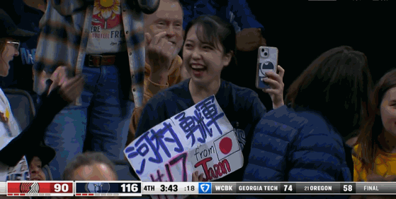 宠儿!河村勇辉替补登场 灰熊主场粉丝起立欢呼&女球迷兴奋嘶吼!