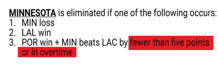 如果森林狼跟快船今天打进了加时,即使森林狼净胜一万分,他们仍然会因为净胜分不足而被淘汰;
