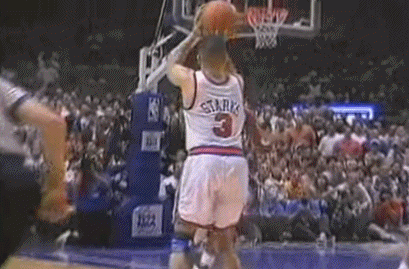 1994年总决赛,奥拉朱旺第六场给斯塔克斯的惊天大帽永载史册,然而很多人不记得第三场的那次三分球犯规。当时比赛还剩22秒,火箭91比88领先,尼克斯第一个三分不中,抢下篮板后几经传递,球给到了左侧弧顶的斯塔克斯。出手的瞬间,比赛还剩3.9秒,冲出来协防的大梦扑倒了斯塔克斯,裁判吹罚了犯规。