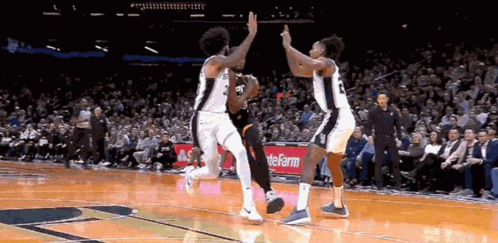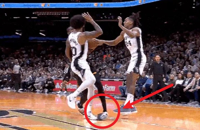 杜兰特持球进攻,面对马刺两人——朱利安-尚帕尼和瓦塞尔的防守,他落地时踩在尚帕尼的脚上,几乎90度崴脚